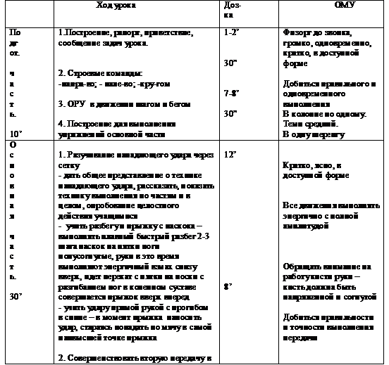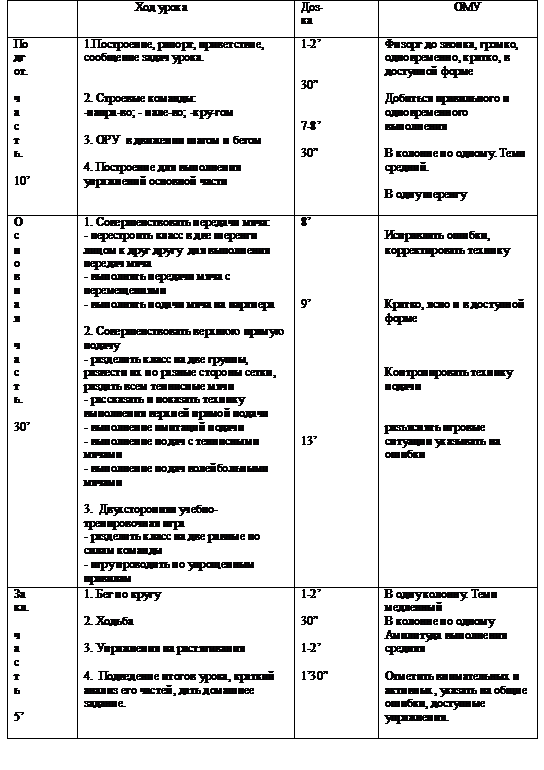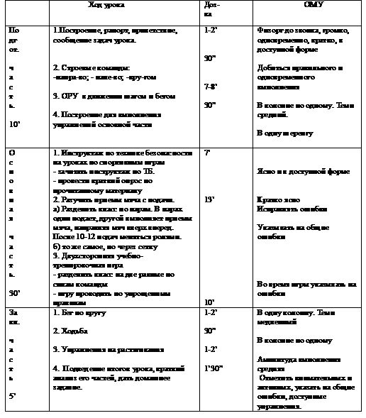 . Совершенствовать навыки волейбола в двухсторонней игре План-конспект урока по волейболу № 4 для 10 класса