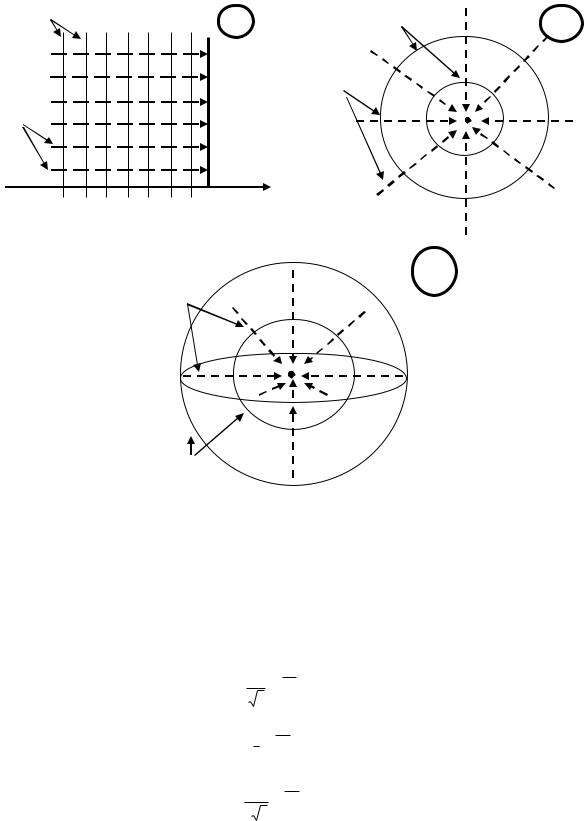 Рисунок 1.2. Одномерные потоки в пространстве: а) одного б) двух и в) трех измерений.
