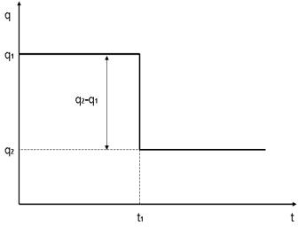 Рисунок 1.4. Принцип суперпозиции при решении линейных уравнений: скважина с переменным дебитом