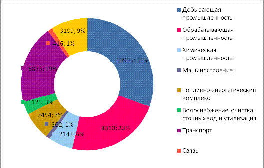 составляет 10925 человек или 31%. Тогда как наименьшая доля лиц (1%), работающих