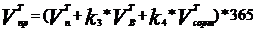 ф) Vпрт=(1150,684+0,7*1232,876+3*0,03*1150,684)*365=772798,80