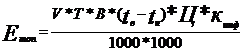 В - норма расхода условного топлива для подогрева 1000 м3 здания на 1 градус С° в сутки равна 2,5 кг;
