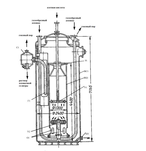 На рисунке 1 изображена одна из конструкций аппарата ИТН, применяемая на многих действующих производствах аммиачной селитры.