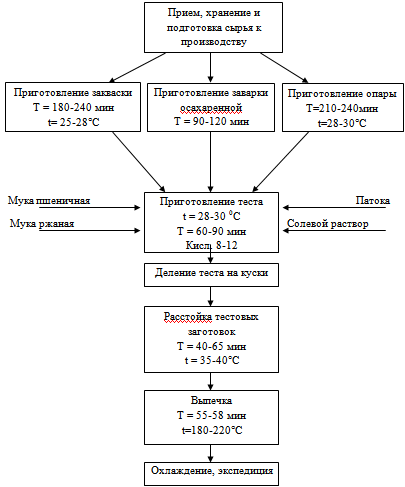 .1 Технологическая схема производства Бородинского хлеба из ржаной обойной муки массой 0,5кг.