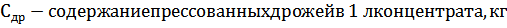 Сдр - содержание прессованных дрожжей в 1 литре концентрата,