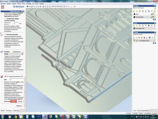 Интерфейс программы ARTCAM с формообразующими линиями для барельефа.