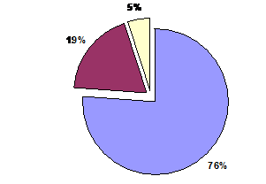 Как видно из рисунка, 76 % произведённых пирожных реализуется в областном центре, 19 % - в области, и только 5 % продукции идёт на продажу за пределы региона. Внутри области рынок характеризуется следующими показателями: 65,5 % продукции реализуют торговые предприятия потребительской кооперации, 23 % - предприятия государственной структуры; через фирменную торговую сеть реализуется около 11,5 % продукции. Сложившаяся структура рынка сбыта обновляется за счёт постоянного роста потребителей многих районов области.