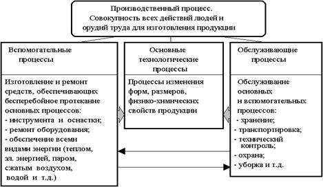 Производственный процесс - это совокупность всех действий людей и орудий труда, необходимых на данном предприятии для изготовления продукции.
