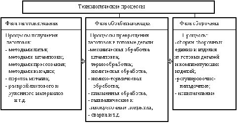 В машиностроении и приборостроении технологические процессы в основном делятся на три фазы: