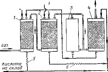 башней. Процесс образования кислоты протекает по всей высоте башни 2,