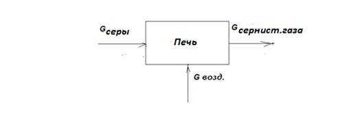 Материальный баланс для печи сжигания серы.