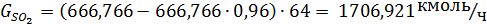 (степень превращения сернистого газа 0,96).