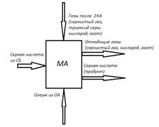 являться: поглощенный триоксид серы и поступающая из сушильной башни 92,4%-ая