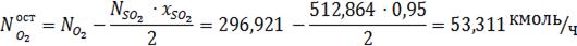 кислорода после 1-ой ступени окисления с учётом степени превращения диоксида