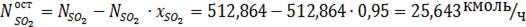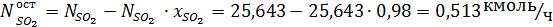 окисление диоксида серы в триоксид серы. Рассчитаем это количество оставшегося