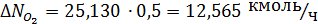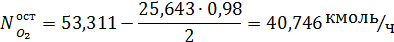 Материальный баланс для 2ой ступени окисления, ( х = 0,98 ).