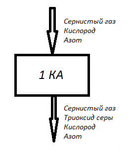 Выходящие потоки: сухой воздух, 93%-ая серная кислота.