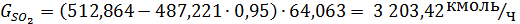 В отходящие газы входят непрореагировавшие диоксид серы, кислород и азот.