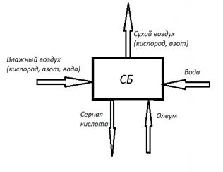 Входящие потоки: влажный воздух, вода из крана, олеум из олеумного абсорбера.