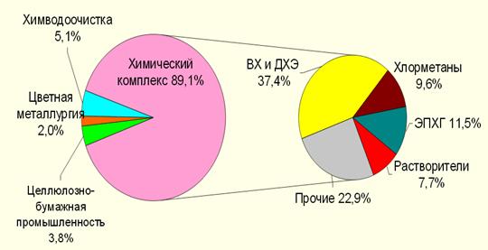 хлористый винил и дихлор этан (37,4%), эпихлоргидрин (11,5%).[7]