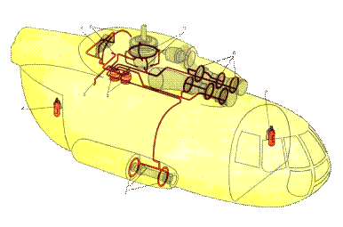 Исполнительные блоки ССП расположены на потолке грузовой кабины.