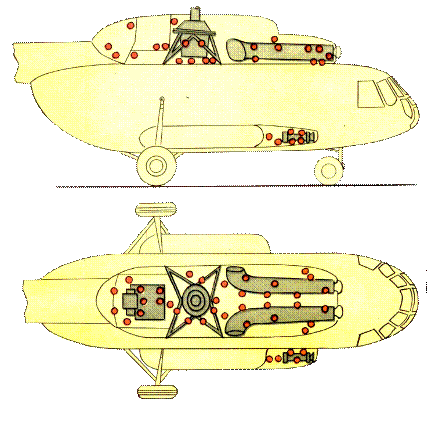 двигателя АИ-9. Четыре группы датчиков размещены в отсеках главного редуктора и