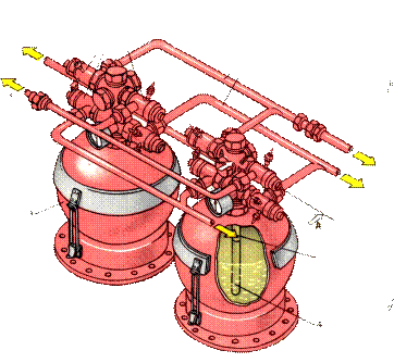 клапанного типа. Каждая пироголовка обеспечивает разряд огнетушителя в отсек, с