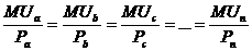 Согласно этой теории рациональный потребитель максимизирует совокупную полезность в том случае, если отношения предельной полезности товара к его цене для всех товаров, приобретаемых потребителем, равны. В этом случае потребитель достигает состояния равновесия.