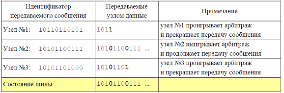 поля идентификатора сообщений (поля арбитража). Во время передачи сообщения,