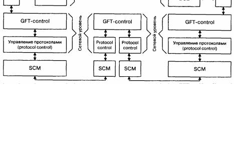 Продолжая аналогию с ОКС-7, отметим традиционную для протоколов пакетной передачи информации поддержку двух видов связи: с установлением соединения (и, как правило, с управлением последовательностью сообщений и подтверждений) и без установления соединения. Реализация этих функций на уровне 3 QSIG-GF возложена на управляющий функциональный блок GFT-Control (рис.5.3). В отличие от DSS-1 протокол QSIG-GF поддерживает как ориентированный на соединение, так и не ориентированный на соединение механизм переноса информации для независящих от базовой связи дополнительных услуг и дополнительных сетевых услуг (ANF). QSIG не допускает наличия двух независимых подсистем для обслуживания базового соединения, в то время как в ОКС-7 для этих целей могут существовать и TUP, и ISUP.
