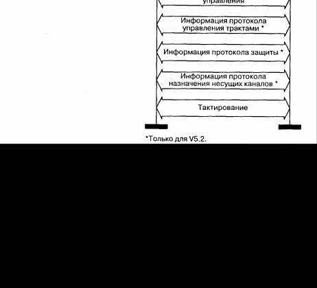 Это — протокол управления базовыми соединениями ISDN, рассматриваемый в главе 7 протокол управления соединениями ТфОП и рассматриваемые в главе 8 служебные протоколы (управления, управления трактами интерфейса, назначения несущих каналов и защиты). Протокол ТфОП и протокол управления действуют в обоих интерфейсах V5.1 и V5.2, а остальные служебные протоколы — только в интерфейсе V5.2 (рис.6.4).
