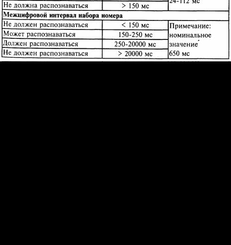 Рекомендуемые значения выдержек времени для распознавания сигналов абонентской сигнализации в цифровых АТС приведены в таблице 1.6. Данные таблицы 1.6 являются обобщением реальных проектных решений. Если строго следовать численным данным из ГОСТа 7153-85, где указан допуск на период Т, равный 100±5 мс, и импульсный коэффициент 1.3-1.9, то импульс должен распознаваться в диапазоне от 53.7 мс до 68.8 мс, а пауза — от 32.8 до 45.6 мс.