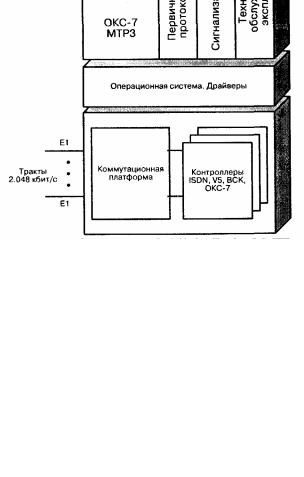Реализация телекоммуникационных протоколов в оборудовании компьютерной телефонии рассматривается далее в этом параграфе на примере интеллектуальной платформы ПРОТЕЙ. Архитектура интеллектуальной платформы ПРОТЕЙ представлена на рис. 11.4. Аппаратное обеспечение состоит из нескольких функциональных модулей - Central Processor Module (CPM), Telecom-Specific Peripheral (TSP), Network Termination Module (NTM) и Power Supply Module (PSM), — выполненных в виде стандартных плат конструктива ISA. Программное обеспечение поддерживает описанные в монографии телекоммуникационные протоколы и зависит от рассматриваемых далее в данном параграфе вариантов применения.