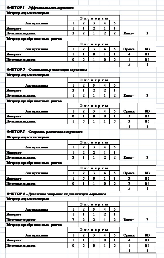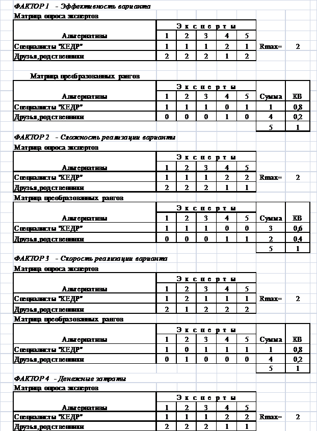 только тех критериев (факторов), которые мы формулировали при расчете каждого