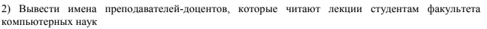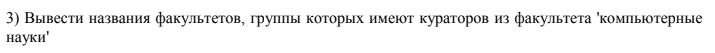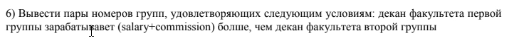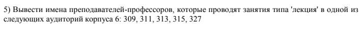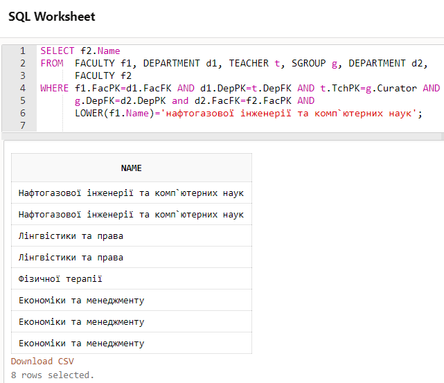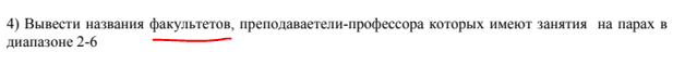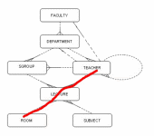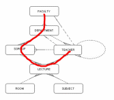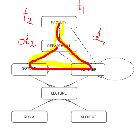 FROM DEPARTMENT d, SGROUP s, LECTURE l, TEACHER t, FACULTY f