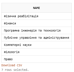 МАКСИМ в запросе просят вывести названия факультетов. А Вы выводите название кафедры.