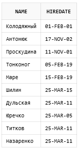 t.Hiredate > TO_DATE('01.01.2001', 'DD.MM.YYYY')) AND