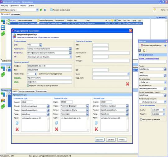 адреса компании, и что самое главное, даты и время последних контактов с данным