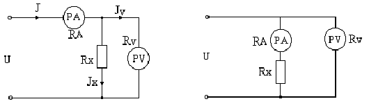 методом амперметра-вольтметра для малых (а) и больших (б) значений