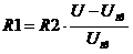 использованием резистивного делителя напряжения определяю по формуле: