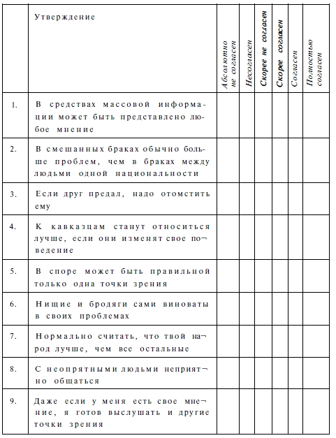 толерантності» (Г.У. Солдатова, О.А. Кравцова, О.Е. Хухлаев, Л.А. Шайгерова)