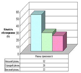 Як бачимо, у досліджуваних був виявлений різний рівень тривожності.