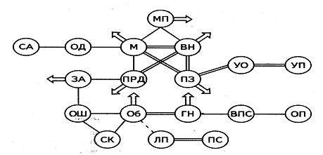 Рис. 1. Взаимосвязи учебно-важных качеств в структуре психологической готовности к обучению в школе в начале первого года обучения