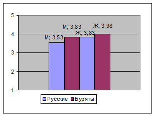 Средним уровнем обладают мужчины бурятской национальности 64%. Они могут заниматься устранением причин эмоциональной напряжённости, имеют способность к самоубеждению, самоанализу, такие люди имеют ответственное отношение к труду и своим делам, окружающим его людям, склонность к саморазвитию, стремление познать себя, определить свои сильные и слабые стороны.