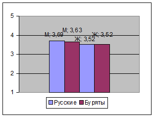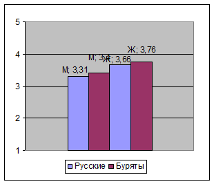 Результаты исследования (рис. 3) показали, что более высокой саморегуляцией обладает бурятский народ. Географическое положение, жизнь в суровых условиях выработало в бурятском человеке умение сохранять спокойствие, проявлять гибкость в мышлении при решении сложным познавательных задач, изворотливость в периоды опасности.