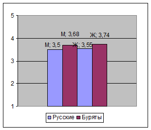 Важно отметить, что средний балл складывается из резко различных высоких, средних и низких показателей психологической культуры у лиц русской национальности, так и бурятской.