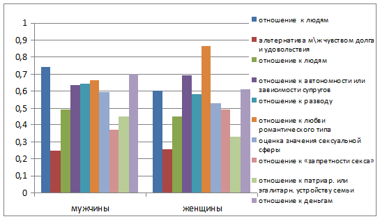 Сравнительный анализ измерение установок в семейной паре у мужчин и женщин