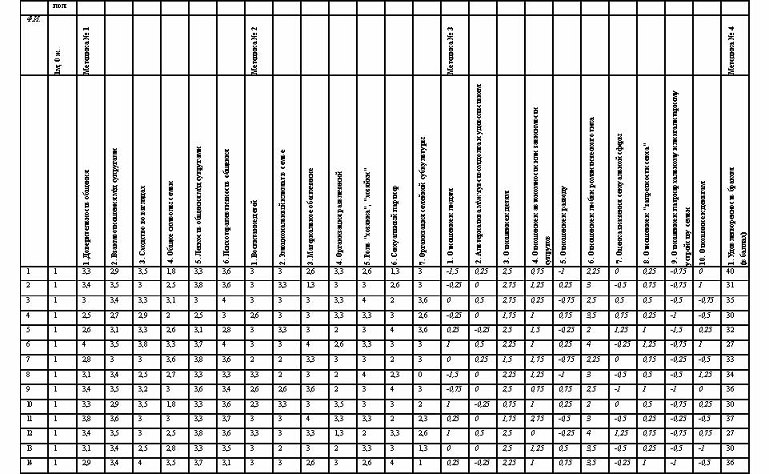таблица результатов исследования