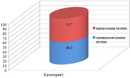 По результатам обследования выборки нашего исследования с учётом групп сравнения (контрольной и экспериментальной группы) были получены относительно равно пропорциональные результаты.