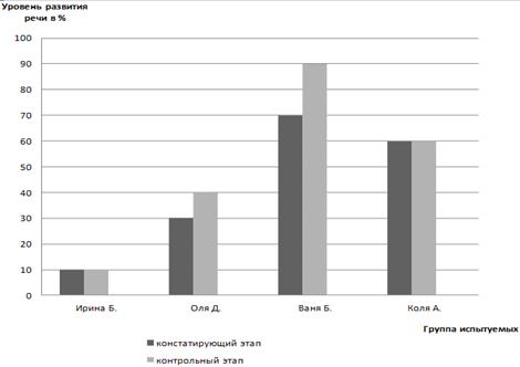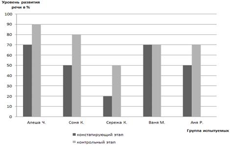 ) Затем проводился сравнительный анализ результатов констатирующего и контрольного этапов эксперимента по изучению уровня развития речи, который показал эффективность предложенной программы.